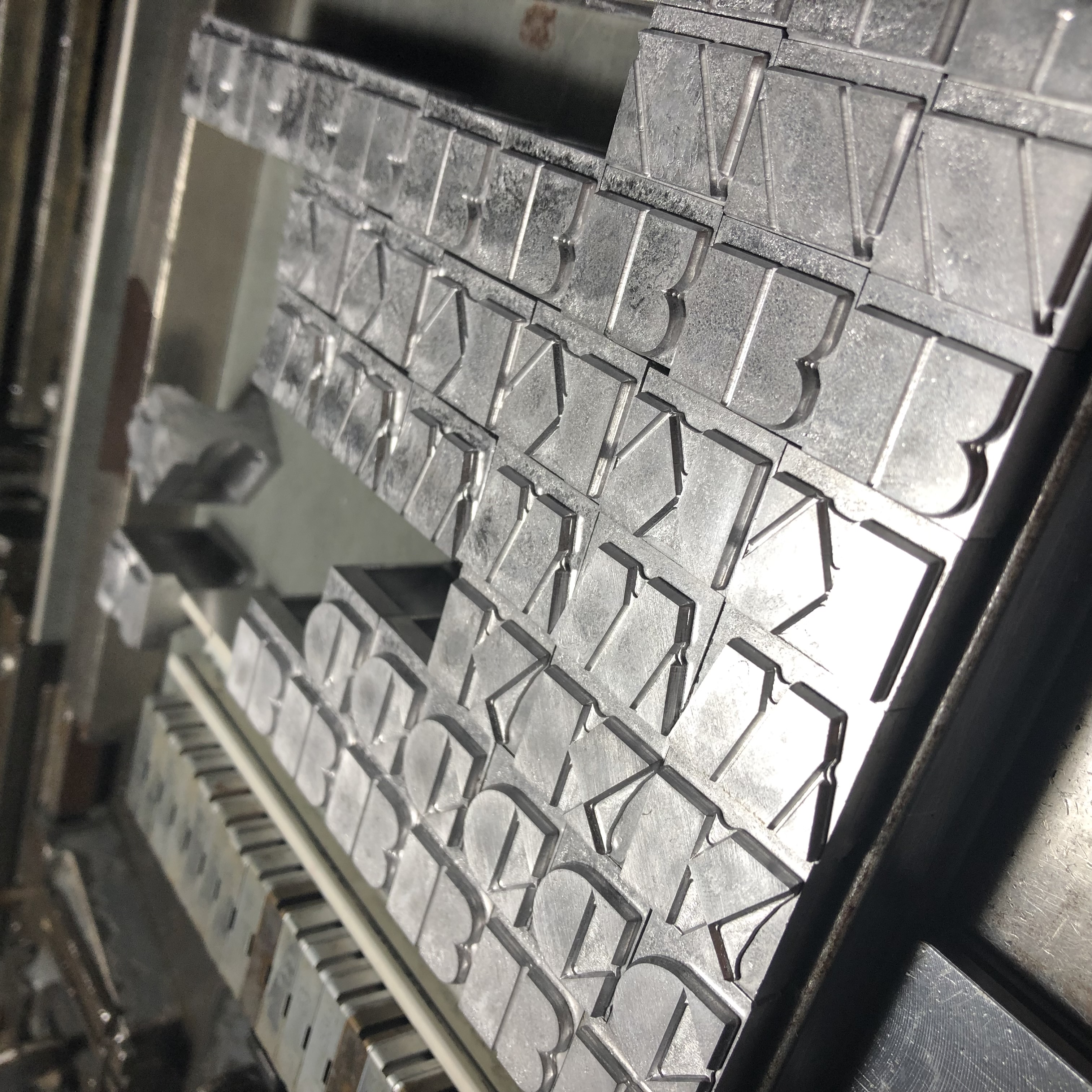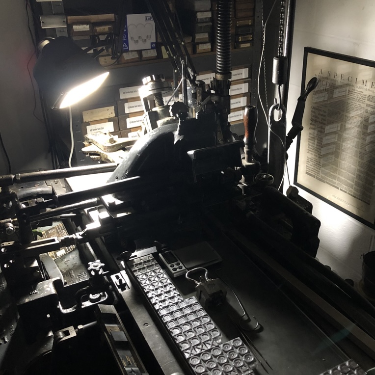 Our Monotype Super Caster at rest following a session casting 48pt Castellar display.